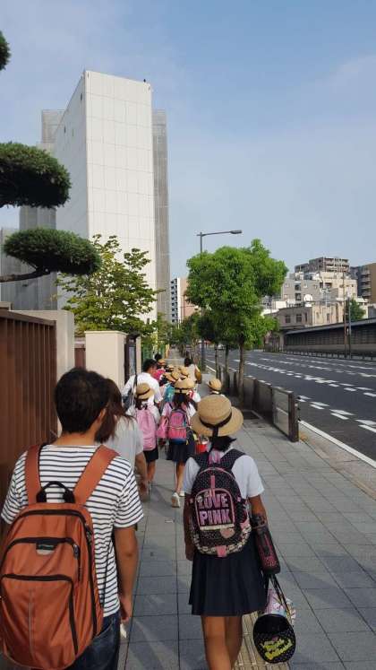 7時過ぎに、「大阪市児童水泳記録会」に参加する子どもたちが学校を出発しました。