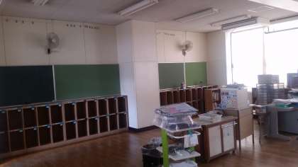写真は高学年の教室です。夏休みを活用して塗装作業で綺麗にしてもらいました。
