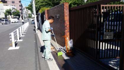 そのため、管理作業員さんが学校周辺の清掃をしています。