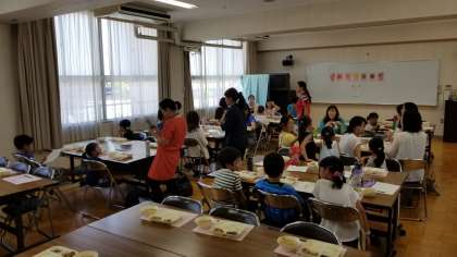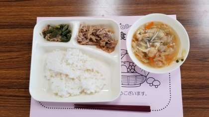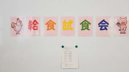 本校の給食は引き続き「朝日給食」さんになりました。また、2学期から天王寺中学校との親子給食がはじまります。そのための事前給食試食会です。
