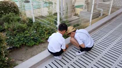 ありの様子を観察している児童がいました。