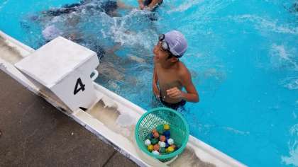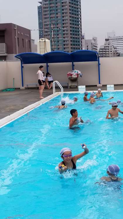 25mを泳いだ後は久々の宝探しです。男女で対抗戦です。