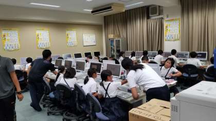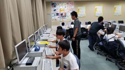 PC教室がいっぱいです。名刺づくりに挑戦しています。