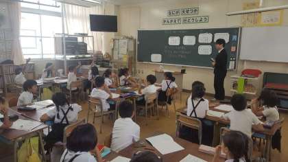 大きな数のひっ算の仕方をていねいに学習していました。実習生も子どもたちも一生懸命がんばっていました。
