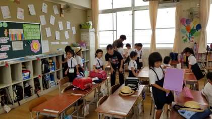 担任の先生と時間割の確認をしたり本を読んだりしてすごしています。