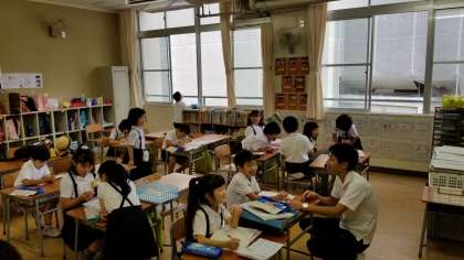 実習の先生と遊んでいます。学習の準備をしている子どももいます。