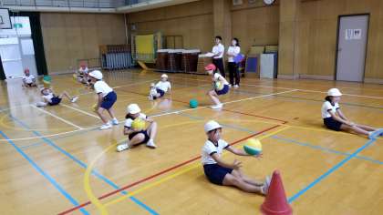 ボールを投げたり捕ったりする動きをみにつけ、工夫して運動しています。