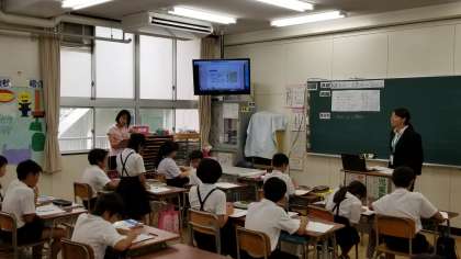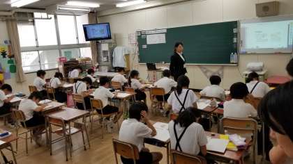 6年生の子どもたちは互いに考えを話合い、発表するなど積極的な姿勢で授業に取り組んでいました。