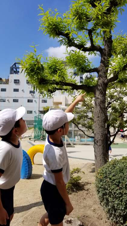 2年生男子児童が、「木にバッタがいる」と教えてくれました。