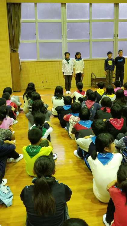今日は他に二つの小学校と一緒です。その中、代表児童が堂々と天王寺小学校の紹介をしてくれました。