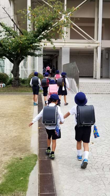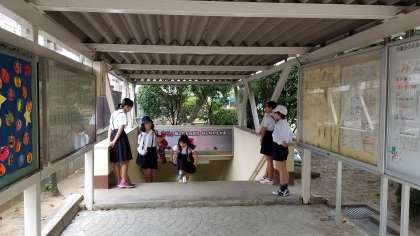 あいさつ当番の児童が、元気なあいさつとともに他学年の児童に声掛けをしてくれていました。