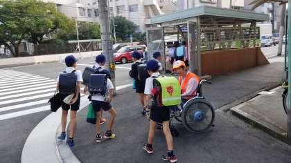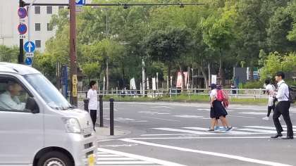 大きな道路を渡り、南側は地下道・北側は正門から登校します。