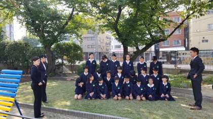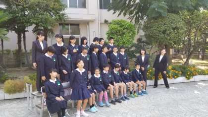 芝生広場で集合していますが、アルバム用の写真は体育館前になります。