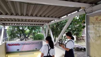 児童のみなさんが登校する地下道をあがってきた入口のまわりには、「きんもくせい」が植えられています。