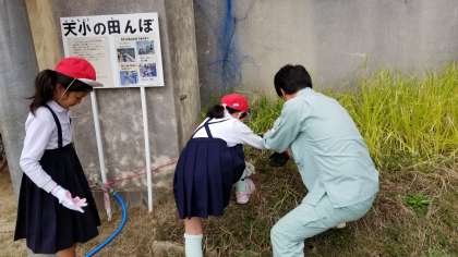 本日5時間目、5年生が「稲刈り」を行いました。