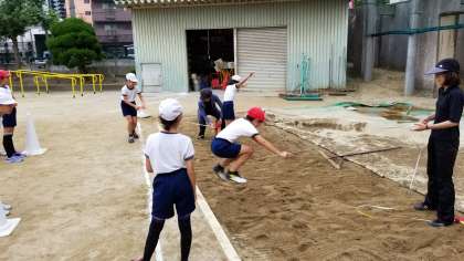先生の指導でみんなが協力して、安全に測定を行っています。