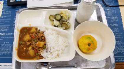 (今日のカレーのルーの素は米粉を原材料とし、小麦粉は使用していません。)