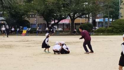 先生とハンカチ落としをしているのかな?