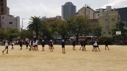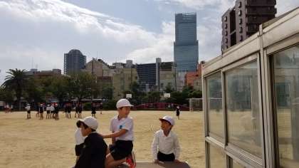 太陽の日差しのもと元気に遊んでいます。
