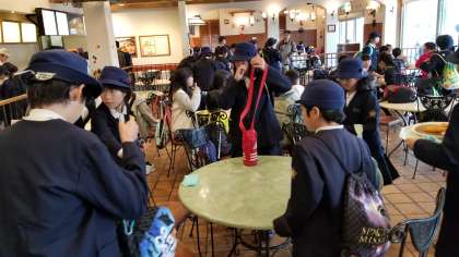 スペイン村では班活動です。昼食も班ごとにお店を決めてたべています。