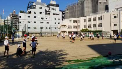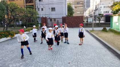 ボールゲーム、おにごっこ。みんな元気に遊んでいます。