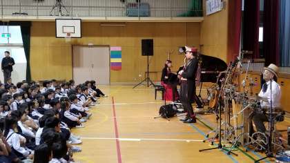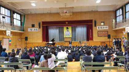 本日土曜授業として体育館で音楽鑑賞会を行いました。
