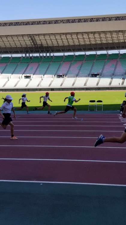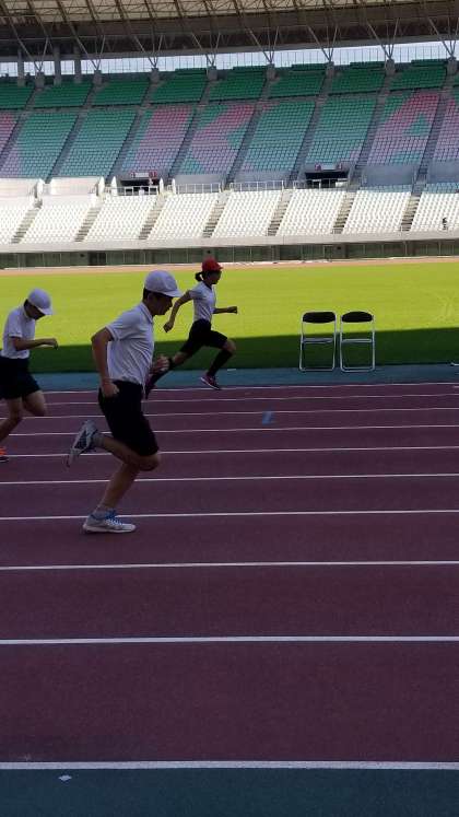 世界陸上が開催される競技場です。楽しんで走ってください。