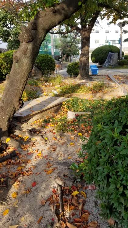 毎年管理作業員さんの心遣いで、色づいた落ち葉がきれいなので掃除するのを少し遅らせています。残り少ない秋を楽しんでほしいと思います。