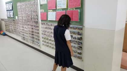自然体験学習の写真を見たり、友だちとおしゃべりしたりしてすごしています。