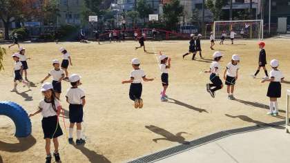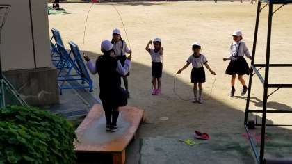 今日は縄跳びの練習をしている児童がたくさんいました。