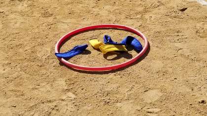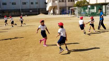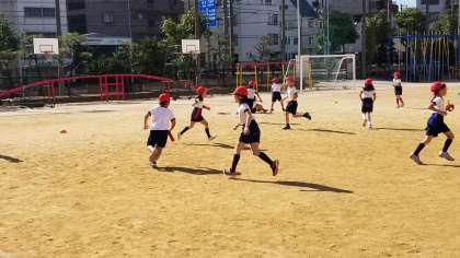 決められたグリッドの中を、互いにタグをとられないようにして運動します。