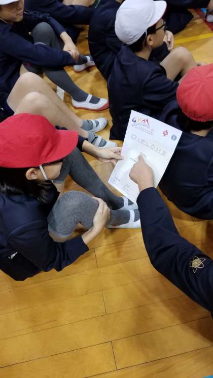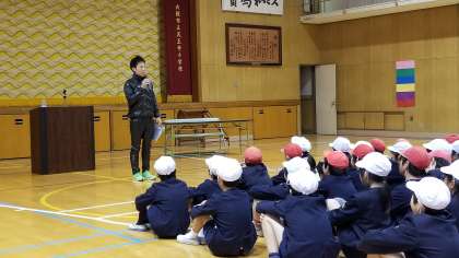 本日は、2000年シドニーオリンピックの体操競技に出場された、藤田健一様を講師に迎えて行われました。オリンピックや世界選手権の貴重なお話を聞くことができました。また、オリンピックの選手証や世界選手権の賞状などの実物を子どもたちに見せてくださいました。