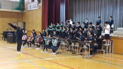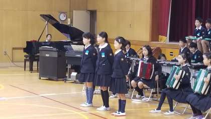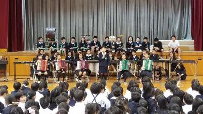 今日の児童集会は、音楽交流会のリハーサルを兼ねた、4年生の合奏と合唱です。