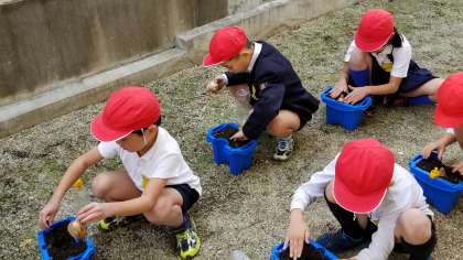 最後に球根を植えました。きれいなすいせんの花がさくのが楽しみです。
