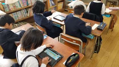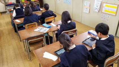 3年2組の国語の授業の様子です。タブレットを活用した授業です。慣用句について学習しています。