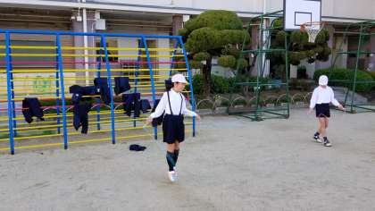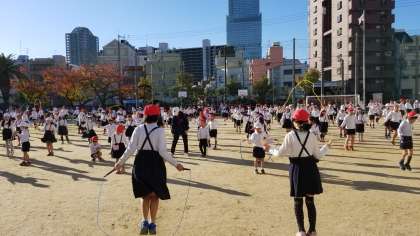 先週から体育朝会の内容が「なわとび」になり、休み時間もなわとびをする児童がふえてきました。みんな、なわとびがうまくなってきています。