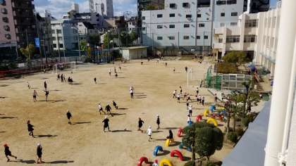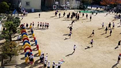 2時間目終了後の休み時間の様子です。運動場で元気いっぱい遊んでいます。