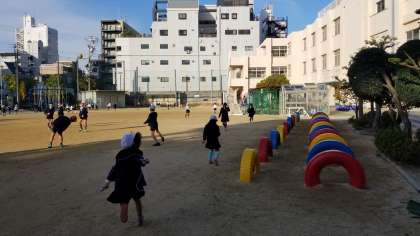 1年生の女子児童が「校長先生、なわとび走りながらとべるよ」と実演してくれました。