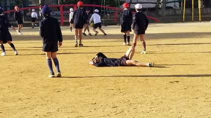 5年生の男子児童がボールを受け損ねてくやしそうです。