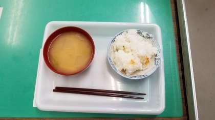 5年生の調理実習で調理したみそ汁とご飯です。