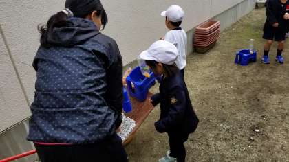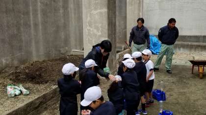 1年生がチューリップの球根を植えました。