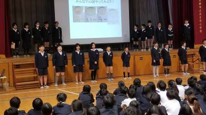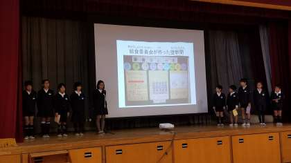 しっかりかんで食べることの効果や「あいうべ体操」など給食委員のみなさんにも手伝ってもらい素晴らしい発表になりました。