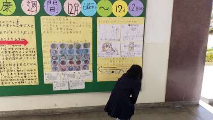 今日の児童集会でも発表された「歯と口の健康」ついてまとめたものが掲示されています。保健委員のみなさんの力作です。