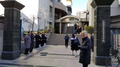 写真は天王寺中学校の教職員と生徒会の様子です。