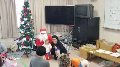 今日は12月で特別ゲストのサンタクロースがきてくれました。