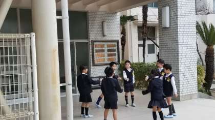 児童集会が始まるまでの間、体育館前で子どもたちが遊んでいます。