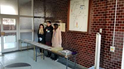 地震を想定して訓練を行いました。その後、縦割班で7つのブースに分かれて学習しました。