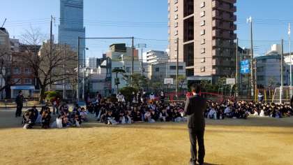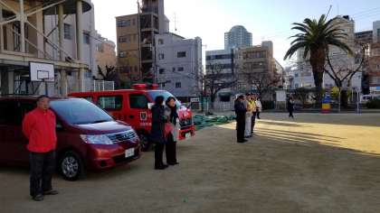 今日は土曜授業で、子ども総合震災訓練の取組です。