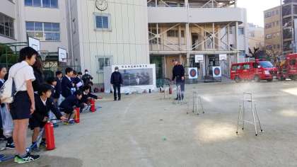 水消火器体験です。