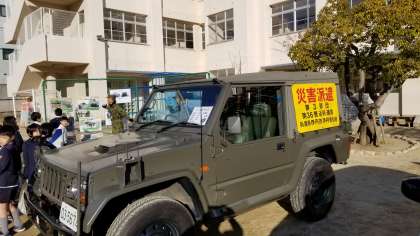 自衛隊展示と防災クイズで、自衛隊の災害救助様子をしります。